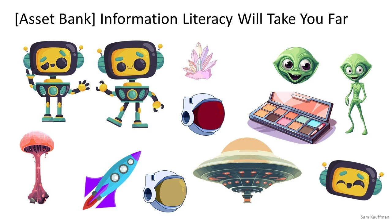 I pitched the story of a KCC Astronaut landing on a distant, alien-inhabited planet where they would be tasked with conducting original research. They would have to create a strong research question, select credible information sources, and more to complete their mission. The Dean and Librarian loved this idea and gave me the green light to proceed.
